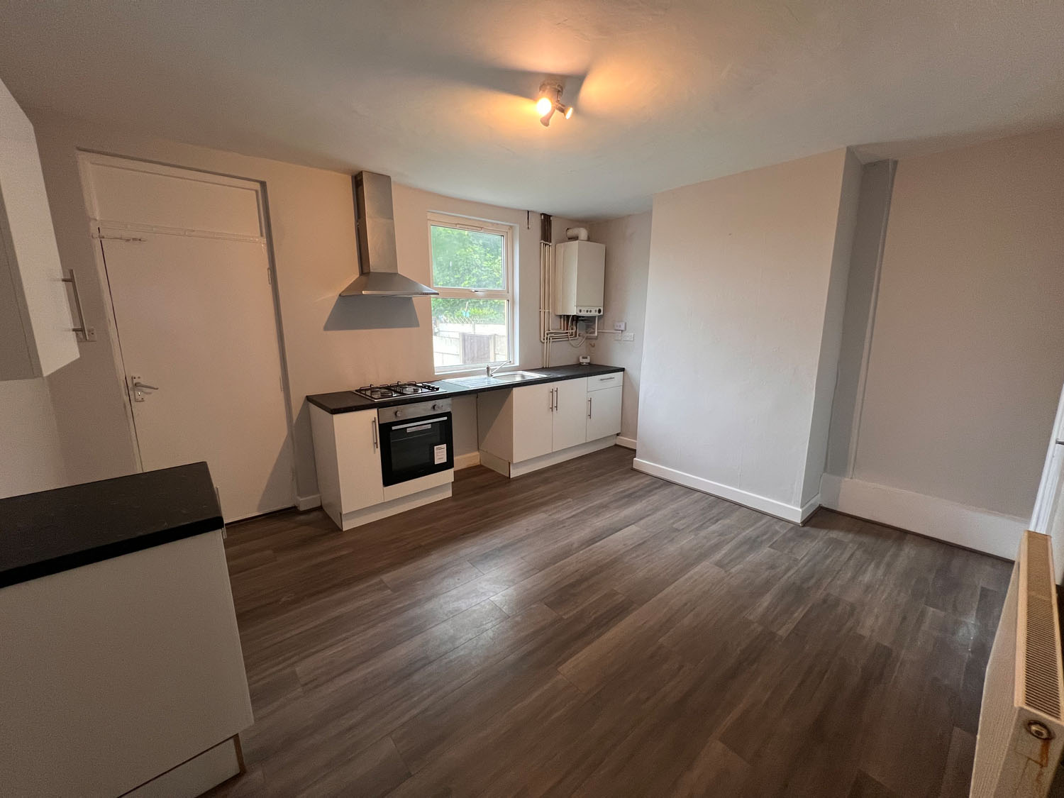 With an attractive range of wall and base units, working surfaces incorporating a sink, drainer, integrated oven, hob & extractor, a rear facing uPVC double glazed window and door leading to the rear yard/garden.